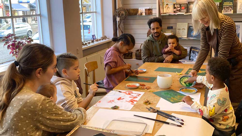 Tine Møller Lauesen viser strøg og teknikker, som går over 150 år tilbage. Hun har studeret og fundet inspiration i udsmykningerne i Det Gamle Elefant Apotek (trapperum og spisesal).